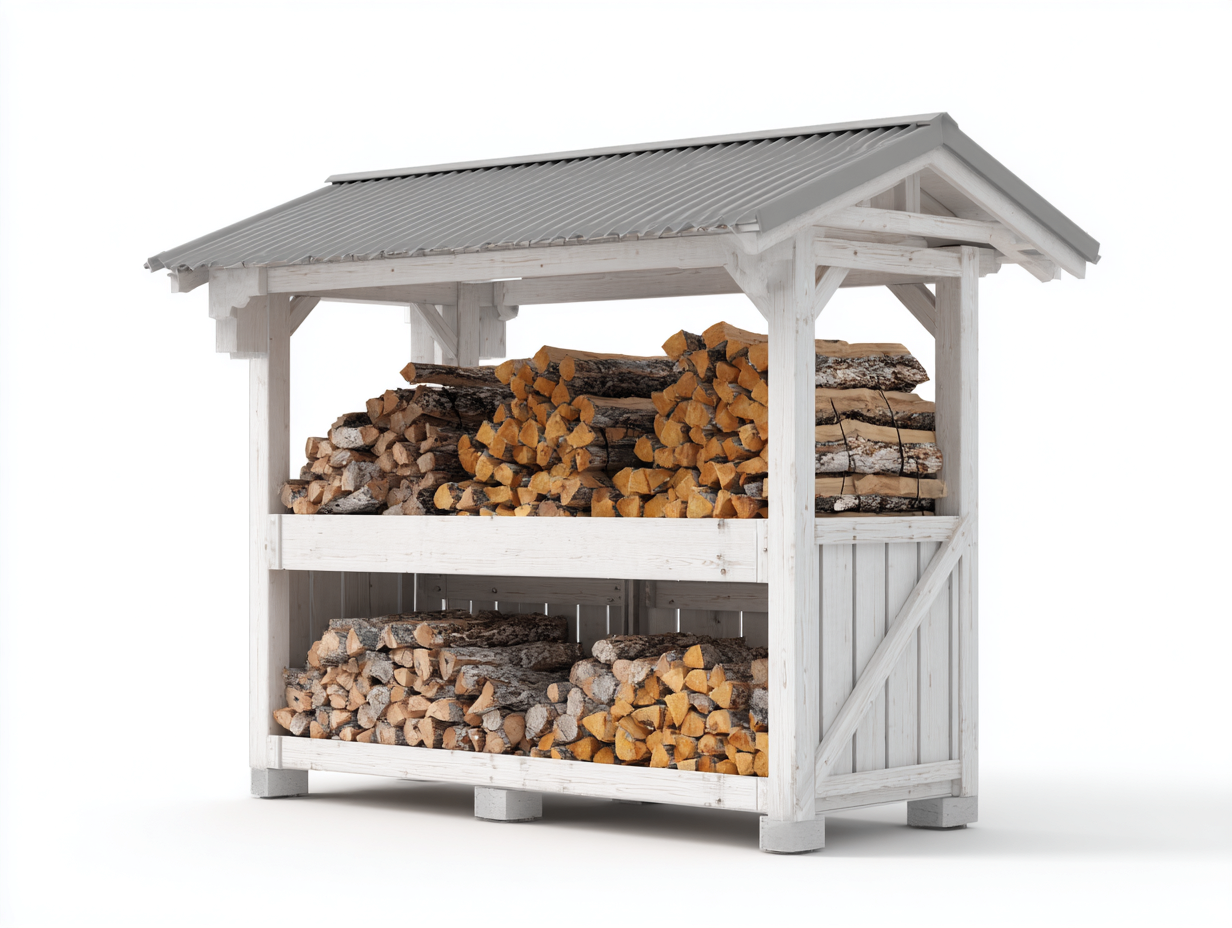 Este leñero de exterior está diseñado para mantener la leña organizada y protegida en espacios al aire libre. La estructura abierta favorece la circulación del aire y ayuda a conservar la madera seca y preparada para su uso. El techo inclinado proporciona protección frente a la lluvia y contribuye a mantener la leña en mejores condiciones. Es una solución práctica para jardines, patios o zonas cercanas a barbacoas y chimeneas exteriores.